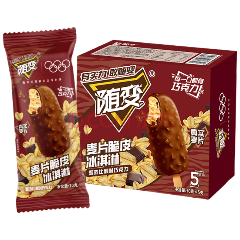 商品名称:蒙牛(MENGNIU)【凤凰传奇推荐】随变麦片脆皮冰淇淋70g*5支/盒雪糕冰棍奶糕冷饮