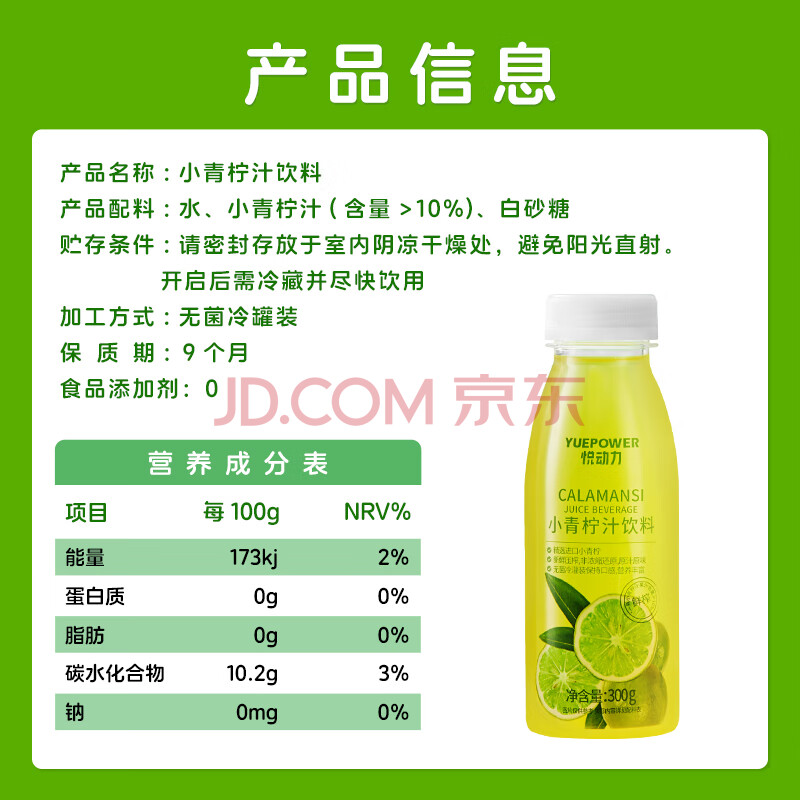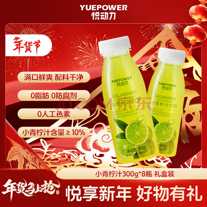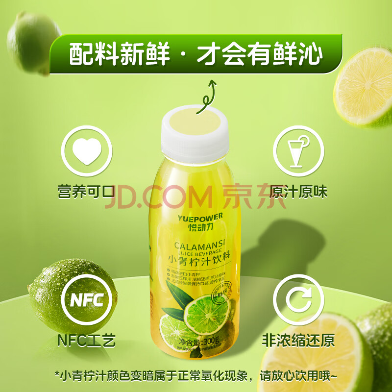 商品名称:悦动力 小青柠汁300g*8瓶柠檬味饮料进口青柠NFC补充维C果汁送礼年货囤