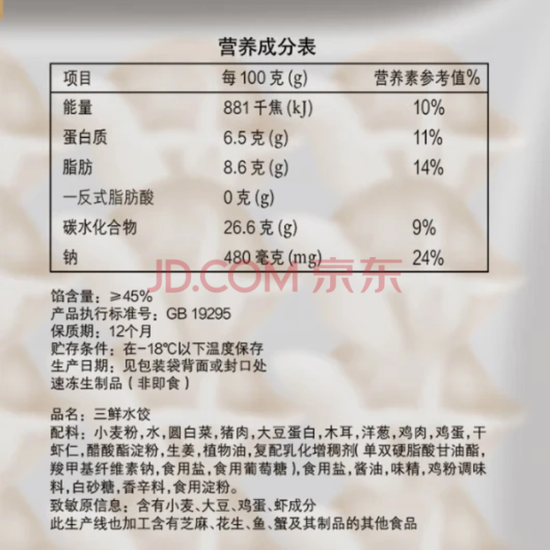 商品名称:三全灌汤三鲜水饺1kg约54只饺子速冻食品早餐蒸饺煎饺生鲜 年货送礼