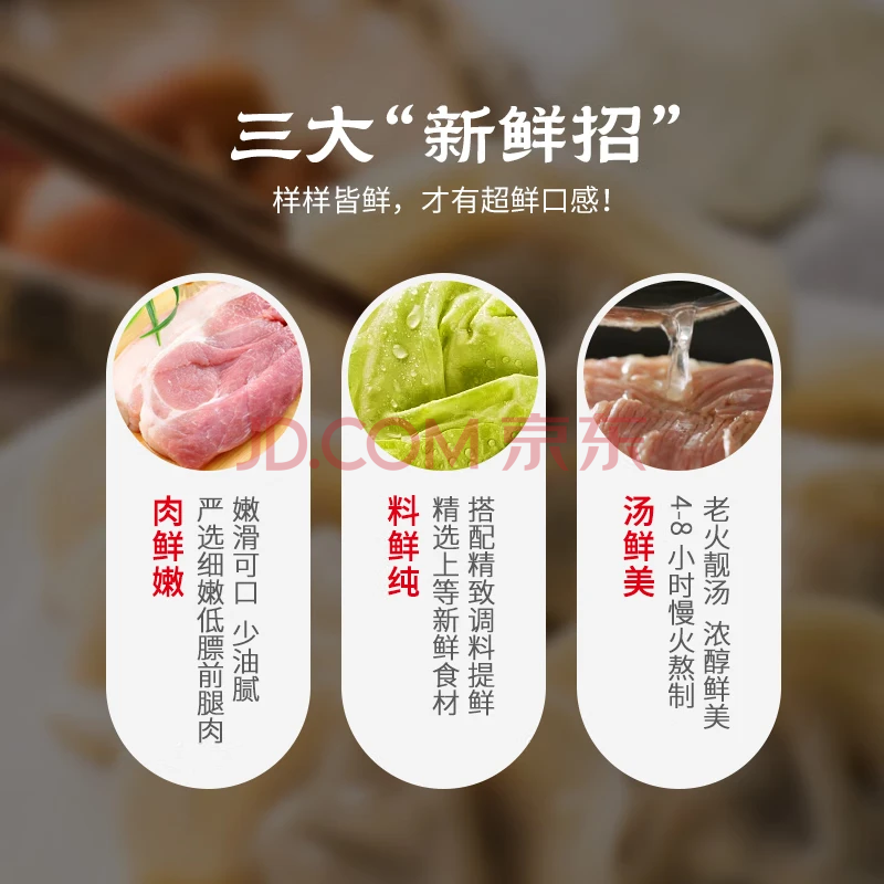 三全猪肉鸡汤小云吞305g*3袋内含汤包蔬菜包速冻学生早餐