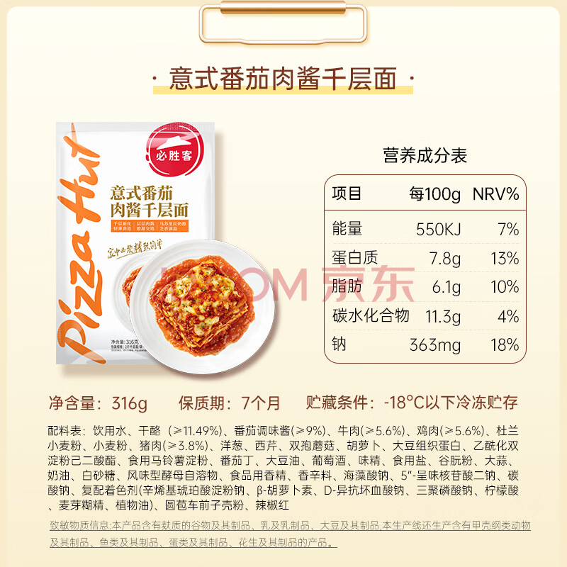 商品名称:必胜客意式番茄肉酱千层面316g*3儿童早餐方便速食空气炸锅食材春节年货