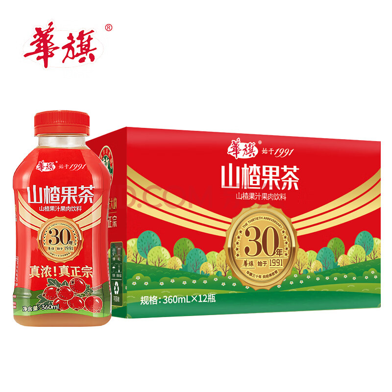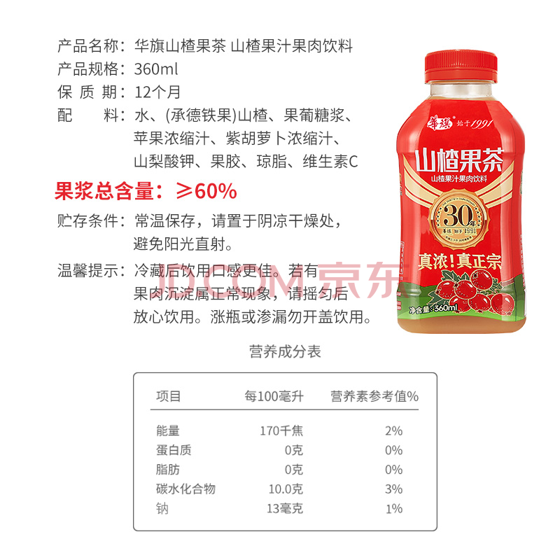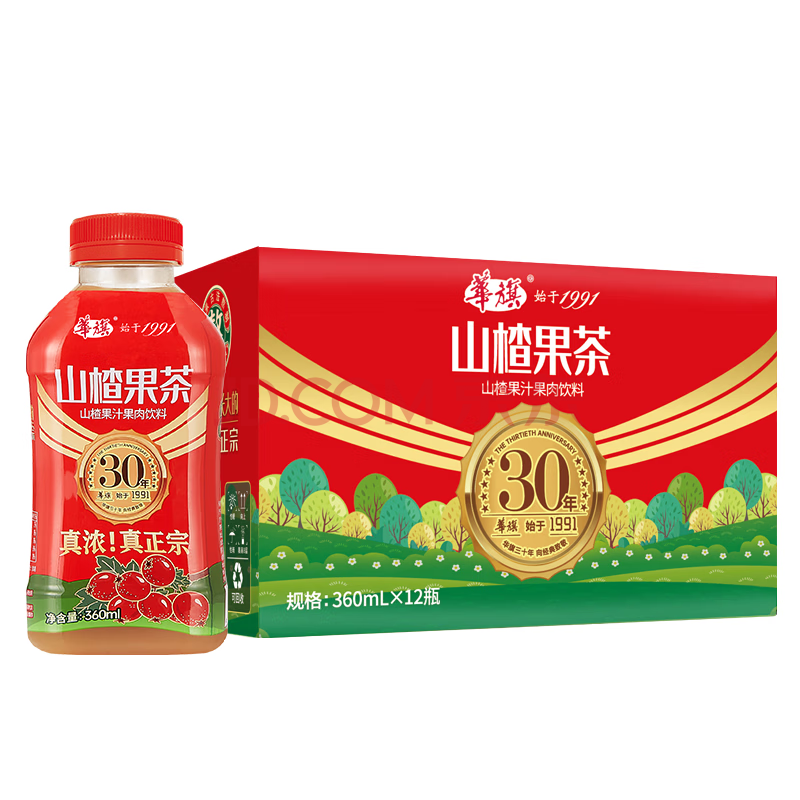 商品名称:华旗山楂果茶山楂果汁果肉饮料华旗30年系列360mL*12瓶年货节礼盒送袋