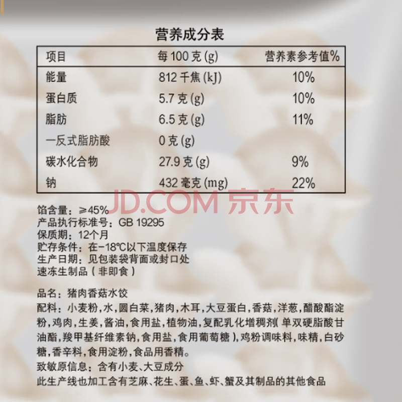 商品名称:三全灌汤猪肉香菇水饺1kg约54只饺子速冻食品早餐蒸饺煎饺 年货送礼