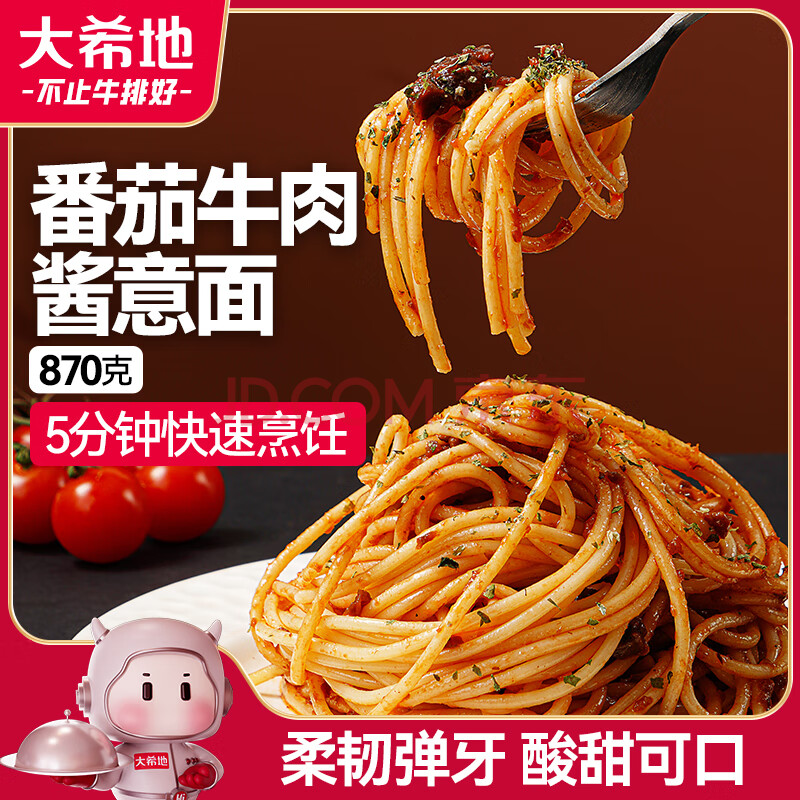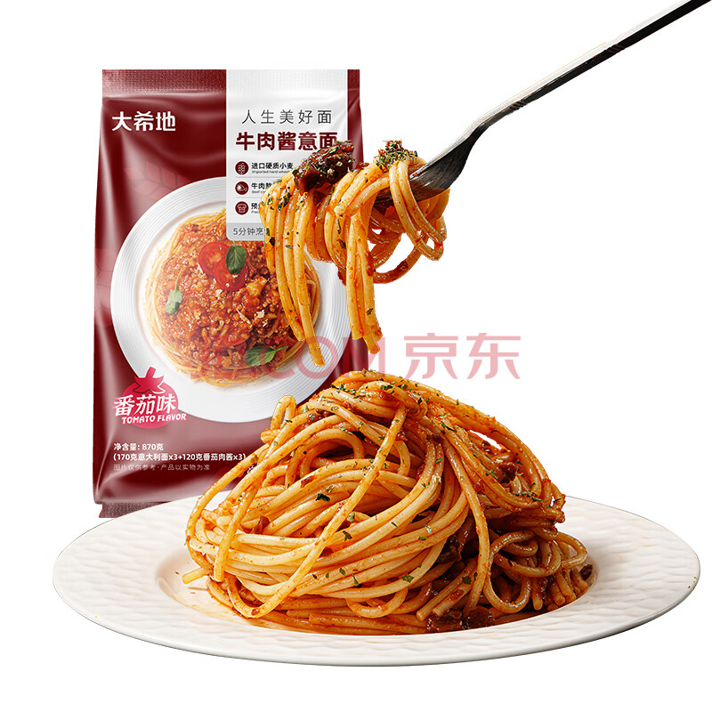 商品名称:大希地 番茄牛肉酱意大利面870g 3袋装 家庭冷冻意面 方便速食