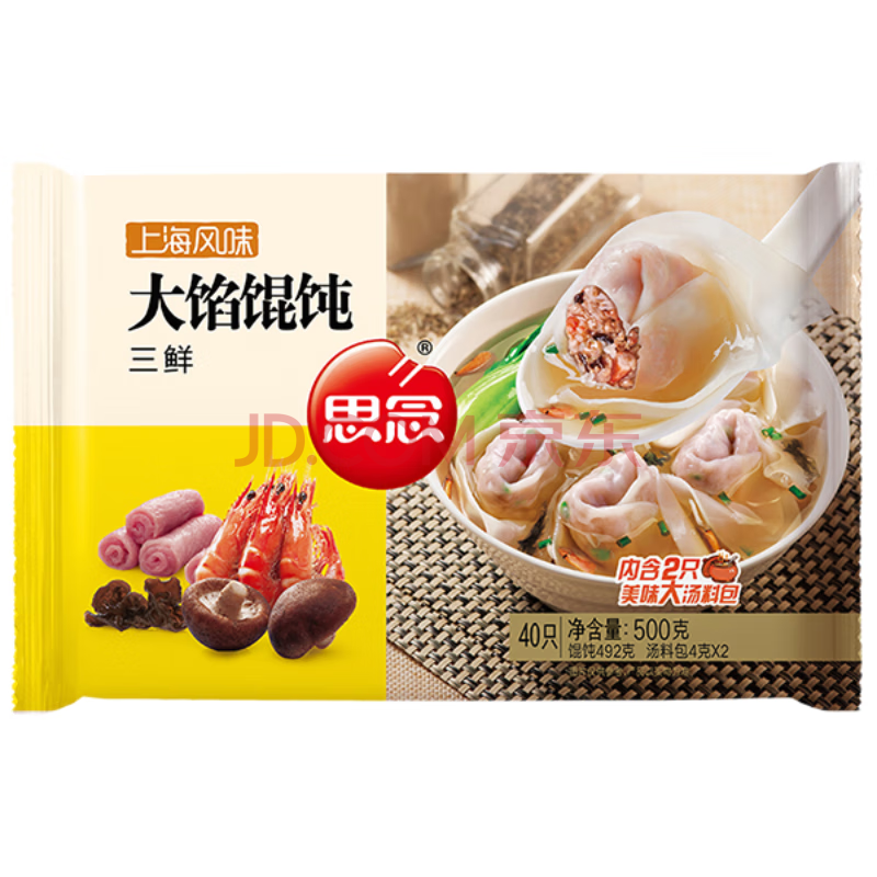 > 思念大馅馄饨三鲜500g40只 早餐年货送礼速冻混沌面点生鲜速食食品