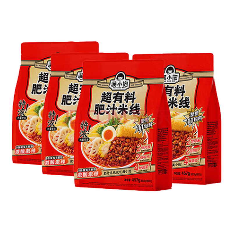 商品名称:满小饱超有料肥汁米线457g*4袋 双倍响铃11包料 酸辣米粉螺蛳粉方便速食