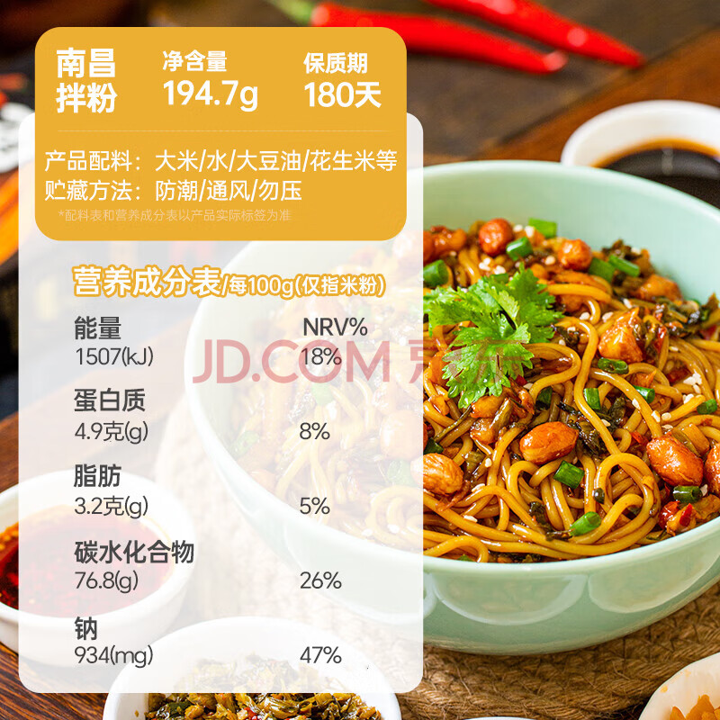 商品名称:云山半南昌拌粉自带料包盒装194.7g江西特产南昌米粉米线方便速食品拌粉