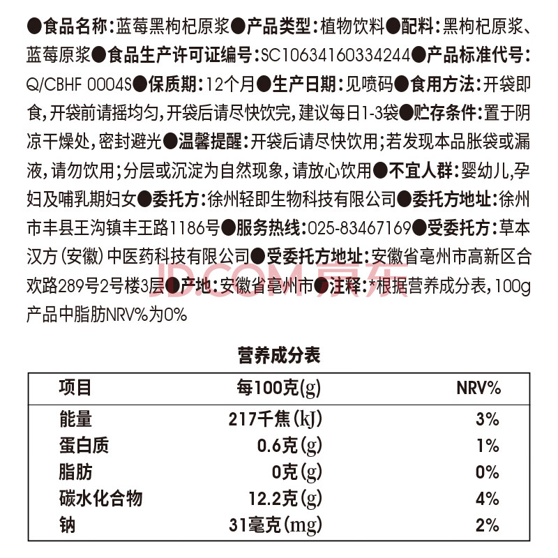 商品名称:轻即蓝莓原浆10ml*10黑枸杞原液100%低脂肪0无糖精卡浓缩卡饮料小包装