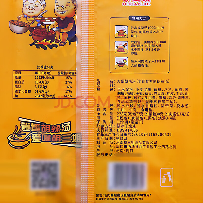 商品名称:胡三姐(HUSANJIE)胡辣汤河南特产微辣牛肉味228g 方便速食清真早餐酸辣速食汤