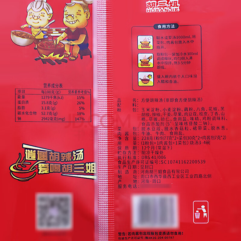商品名称:胡三姐(HUSANJIE)胡辣汤河南特产香菇炖牛肉麻辣味228g 方便速食清真早餐酸辣汤