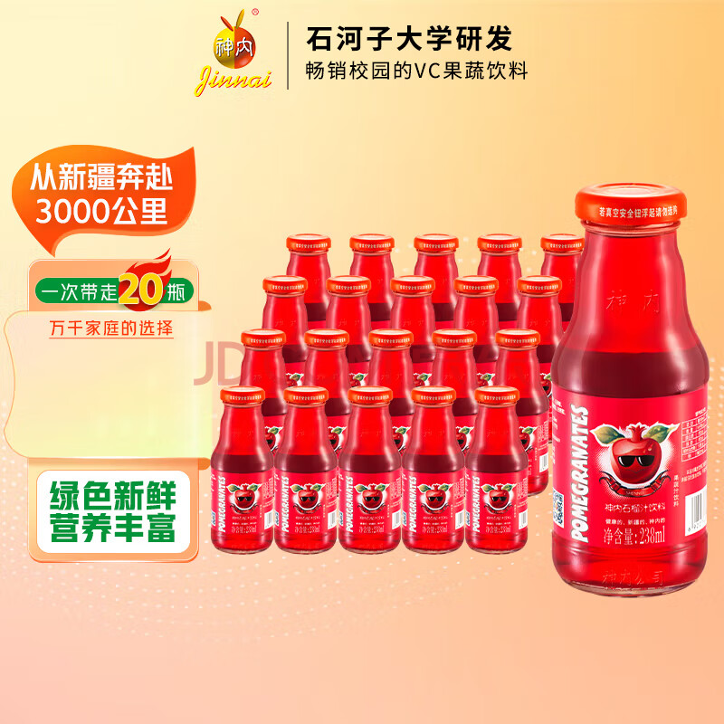 商品名称:神内(GINNAI)新疆石榴汁238ml*20瓶整箱装 0脂肪果汁饮品饮料解腻
