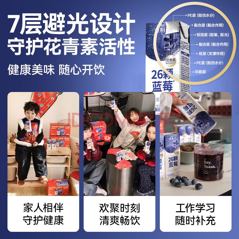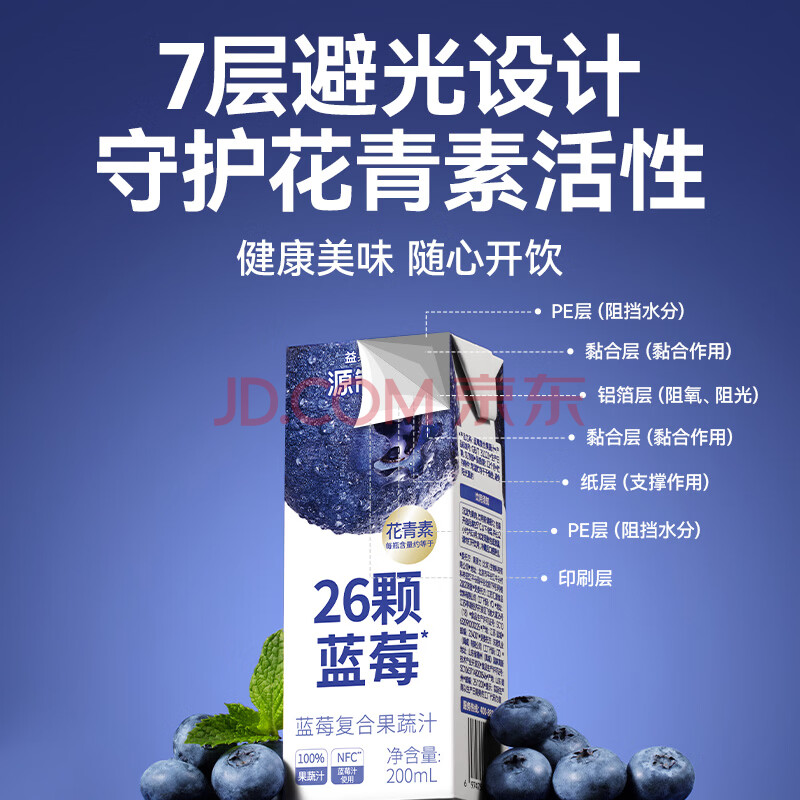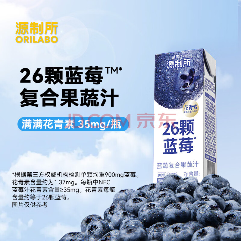 商品名称:源制所蓝莓汁花青素100%复合果汁源究所添加NFC蓝莓汁200ml*12瓶饮料