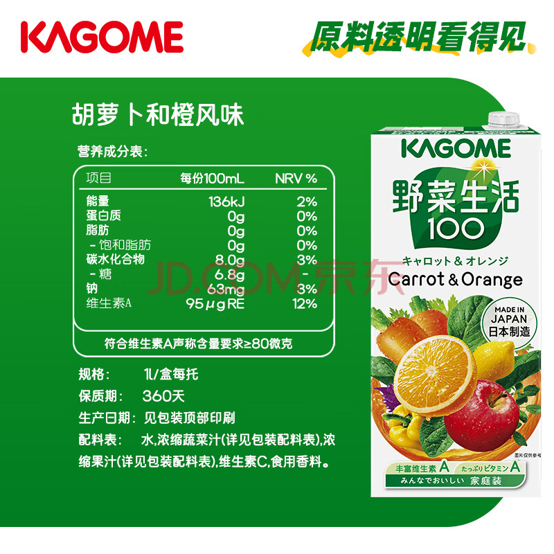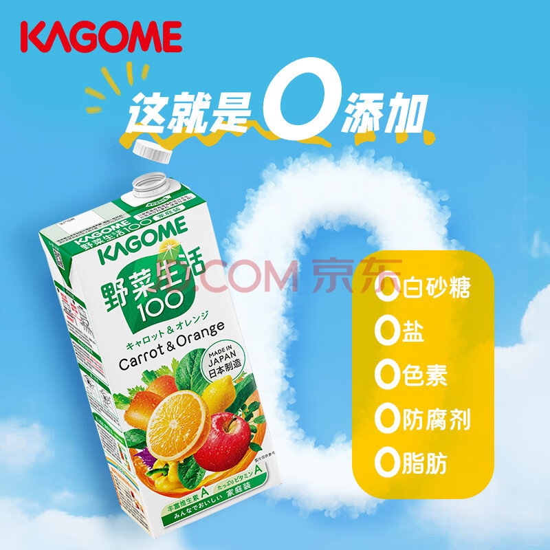 商品名称:可果美(KAGOME)日本进口 野菜生活果蔬汁 鲜橙味复合蔬菜汁儿童饮料1L*6盒整箱