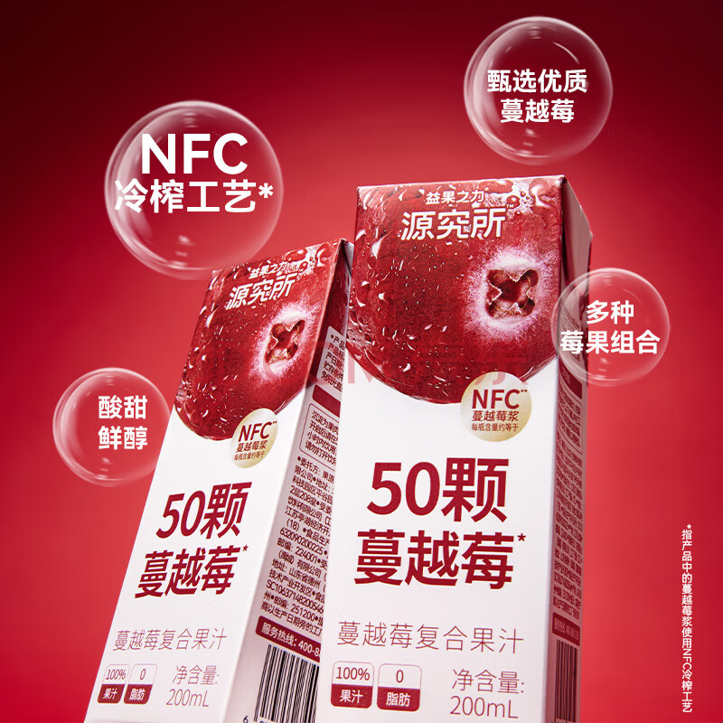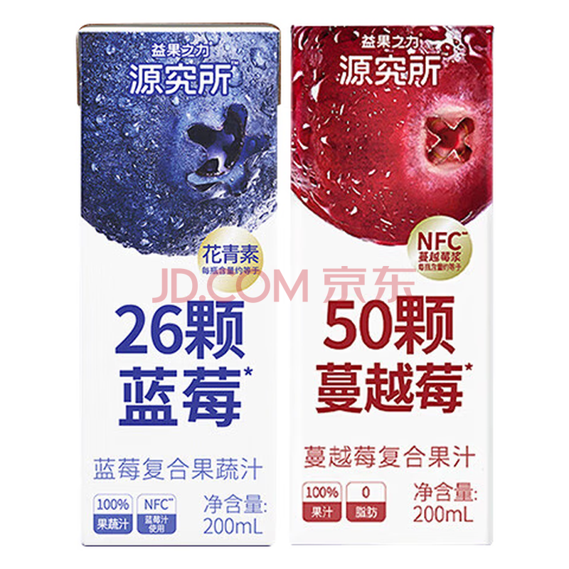 商品名称:源制所蓝莓蔓越莓复合饮料添加NFC果蔬汁源究所混合果汁饮料200ml*24瓶