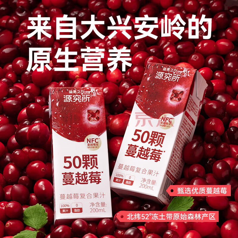 源制所蓝莓蔓越莓复合饮料添加NFC果蔬汁源究所混合果汁饮料200ml*24瓶