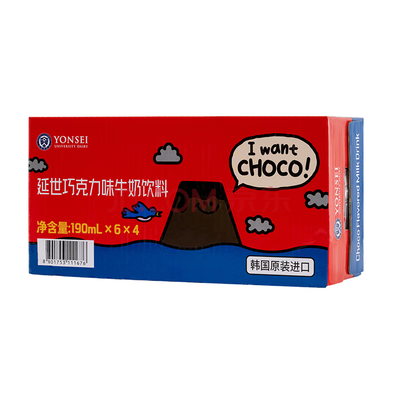 商品名称:延世牛奶延世牛奶韩国进口延世巧克力味牛奶饮料果味奶整箱礼盒190ml*24盒