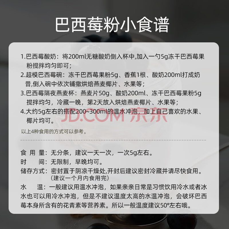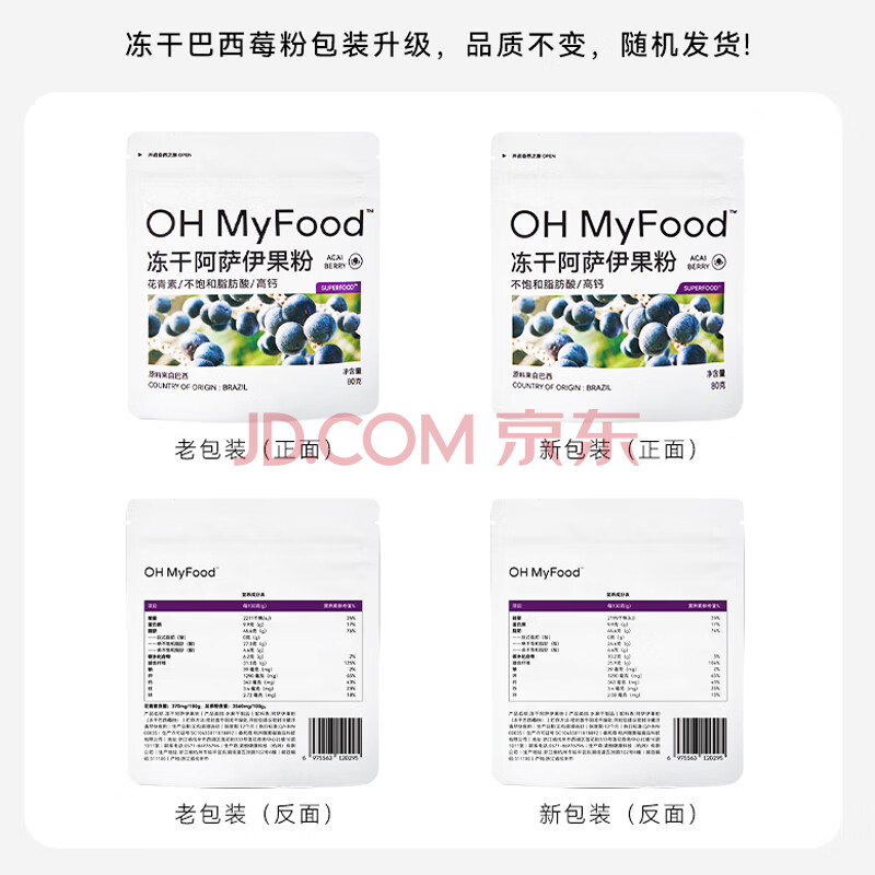 商品名称:OH MyFood冻干纯巴西莓粉80g/袋花青素粉冲饮固体饮料早餐果蔬纤维代餐粉