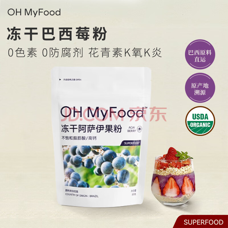 > OH MyFood冻干纯巴西莓粉80g/袋花青素粉冲饮固体饮料早餐果蔬纤维代餐粉