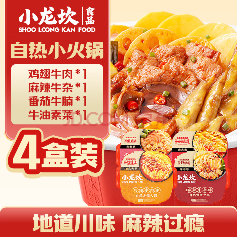 > 小龙坎自热火锅方便速食3荤1素 鸡翅牛肉+麻辣牛杂+番茄牛腩+牛油素菜