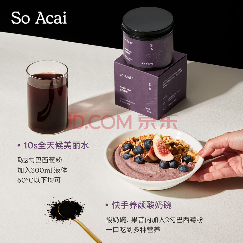 > SO ACAI纯巴西莓粉100g花青素果蔬纤维莓果粉冲调饮料超级食物酸奶碗早餐
