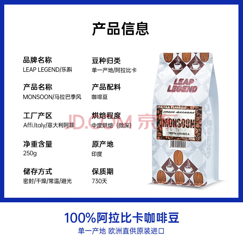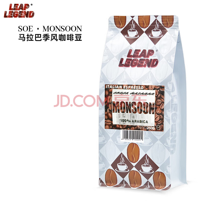 商品名称:Leap Legend 乐斟马拉巴季风意大利原装进口阿拉比卡单一产地咖啡豆250g