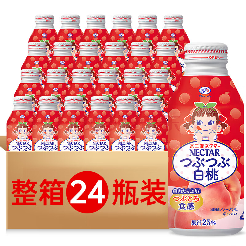 > 不二家(FUJIYa)日本进口果汁饮料果汁含量25%休闲饮品儿童饮料白桃味380g*24