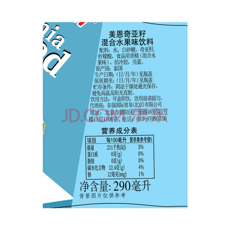 商品名称:美恩 泰国进口 奇亚籽混合水果味饮料290ml*24瓶 整箱装