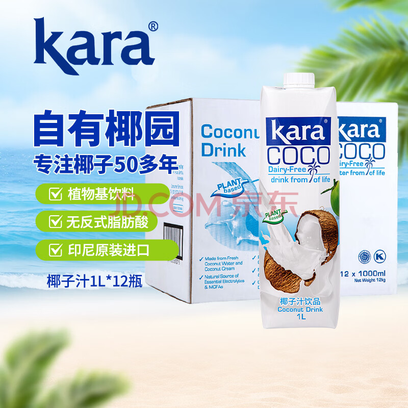 商品名称:KARA 椰子汁饮料1L*12 印尼进口椰肉榨汁椰汁椰奶饮品