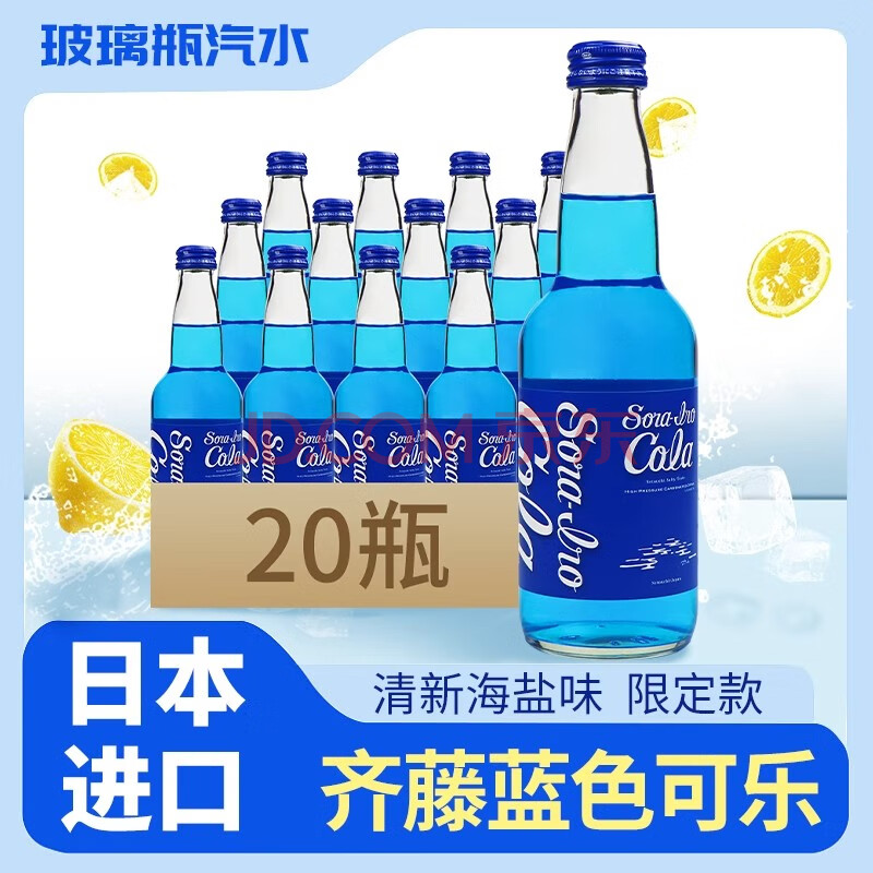 商品名称:齐藤日本进口广岛玻璃瓶碳酸饮料齐藤蓝色可乐330ml*20整箱
