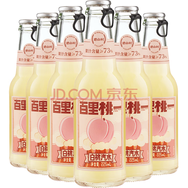 商品名称:碧山村白桃味果汁汽水玻璃瓶气泡水碳酸饮料225ml*6瓶 餐饮聚会派对火锅