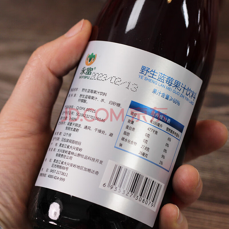 商品名称:永富 大兴安岭野生蓝莓果汁300ml*6瓶 整箱饮料