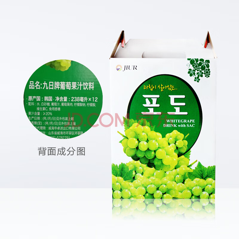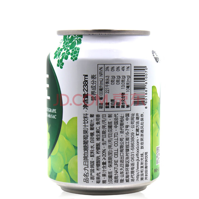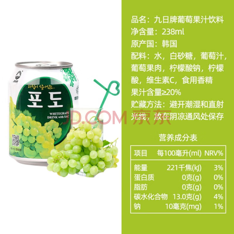 商品名称:九日果汁饮料238ml*12罐葡萄汁果肉果汁网红饮料进口饮料整箱饮品礼盒