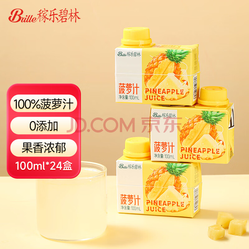 > 稼乐碧林 稼乐碧林果汁 菠萝汁100mL*24盒低脂浓缩果汁饮料整箱装年货年礼
