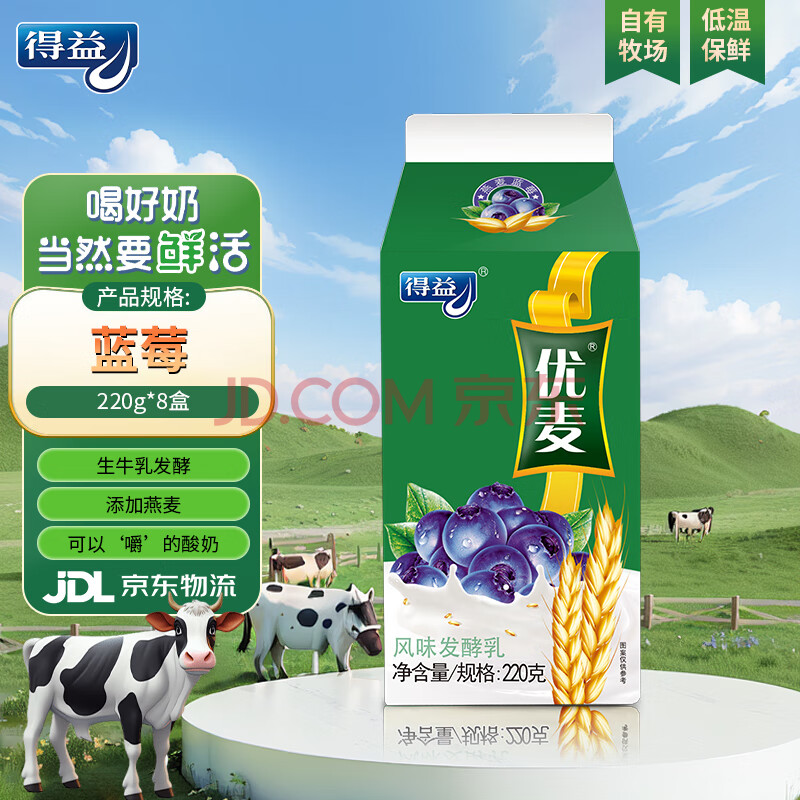 得益优麦活性益生菌低温酸奶蓝莓味 220g*10学生营养早餐代餐源头直发