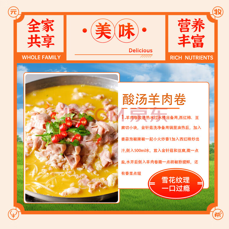 商品名称:元牧希新西兰进口羔羊肉卷净重2斤 羊肉片火锅烤肉炖煮烧烤食材生鲜