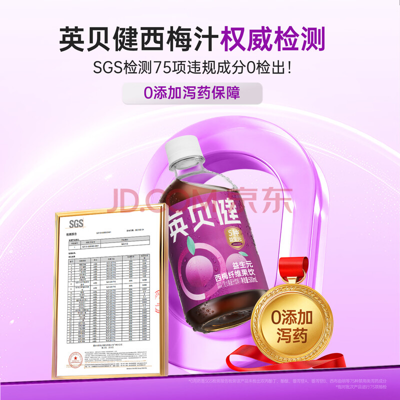 商品名称:英贝健益生元西梅汁果蔬汁纤维饮料脂肪大餐救星500ml3瓶装