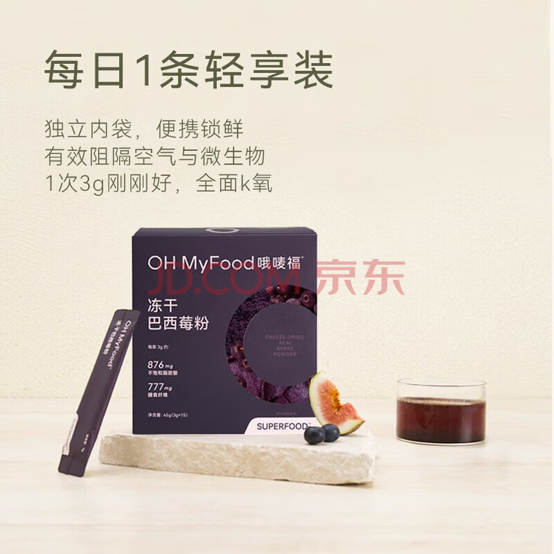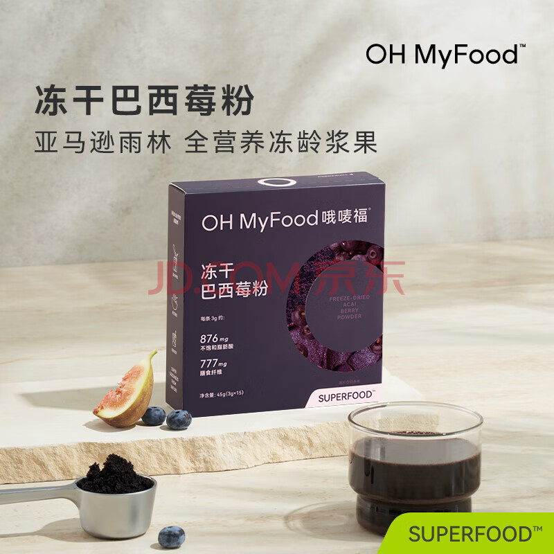 > OH MyFood冻干纯巴西莓粉45g/盒花青素果蔬纤维早餐冲饮料超级食物代餐粉