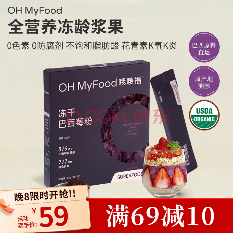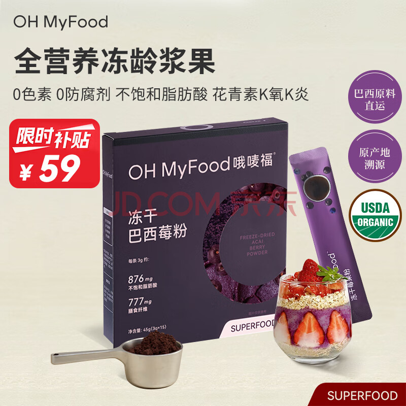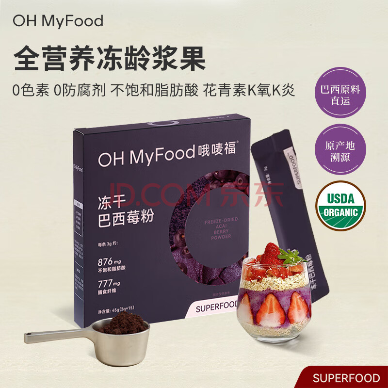 商品名称:OH MyFood冻干纯巴西莓粉45g/盒花青素果蔬纤维早餐冲饮料超级食物代餐粉
