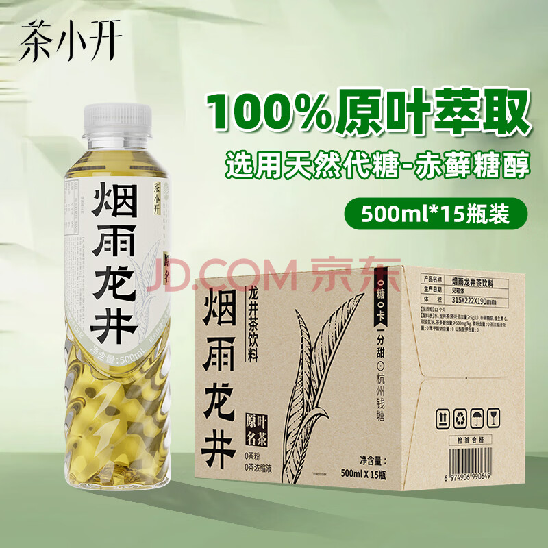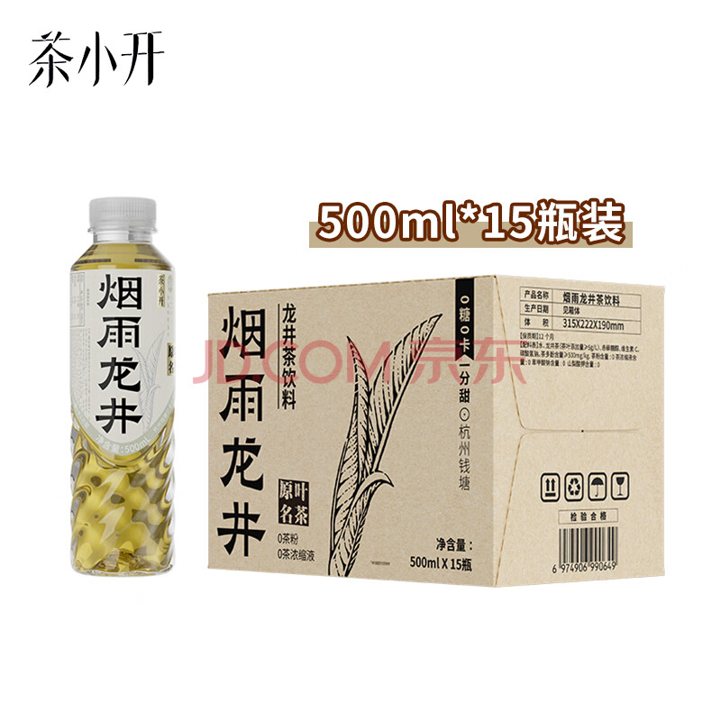 商品名称:茶小开烟雨龙井500ml*15瓶整箱饮料 江南龙井饮品解腻年货礼盒茶饮料