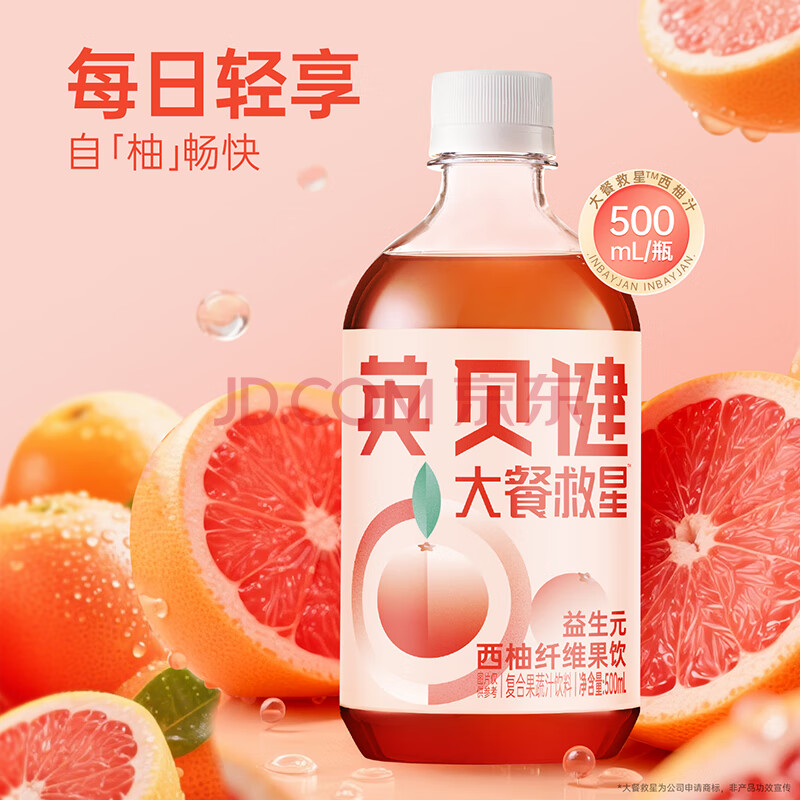 英贝健西柚汁复合柚子汁饮料益生元纤维饮30%含量浓缩果饮0脂500ml3瓶装