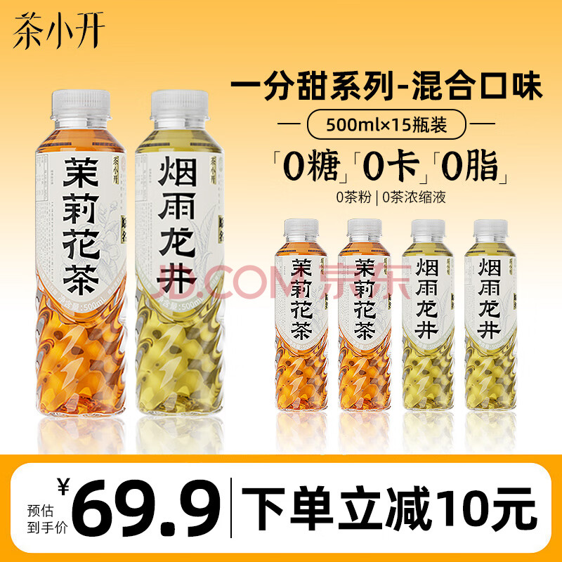 商品名称:茶小开混合随机口味茶饮料500ml*15瓶 茉莉花茶龙井茶饮料年货送礼