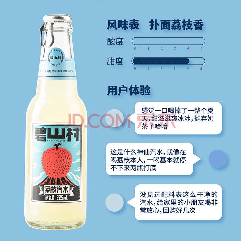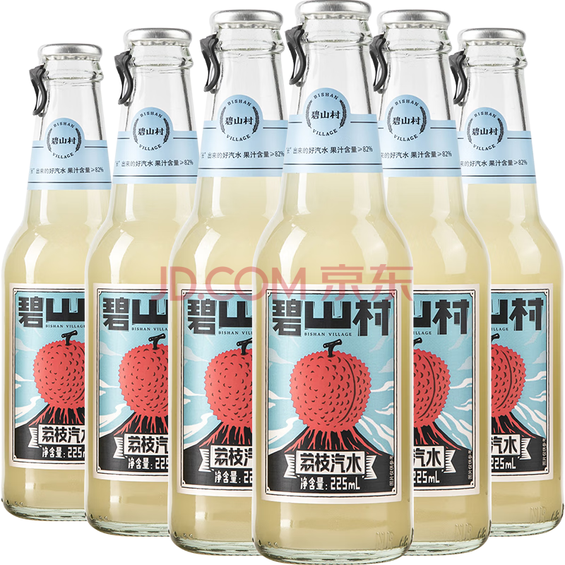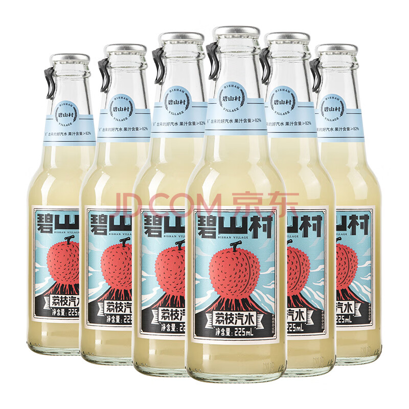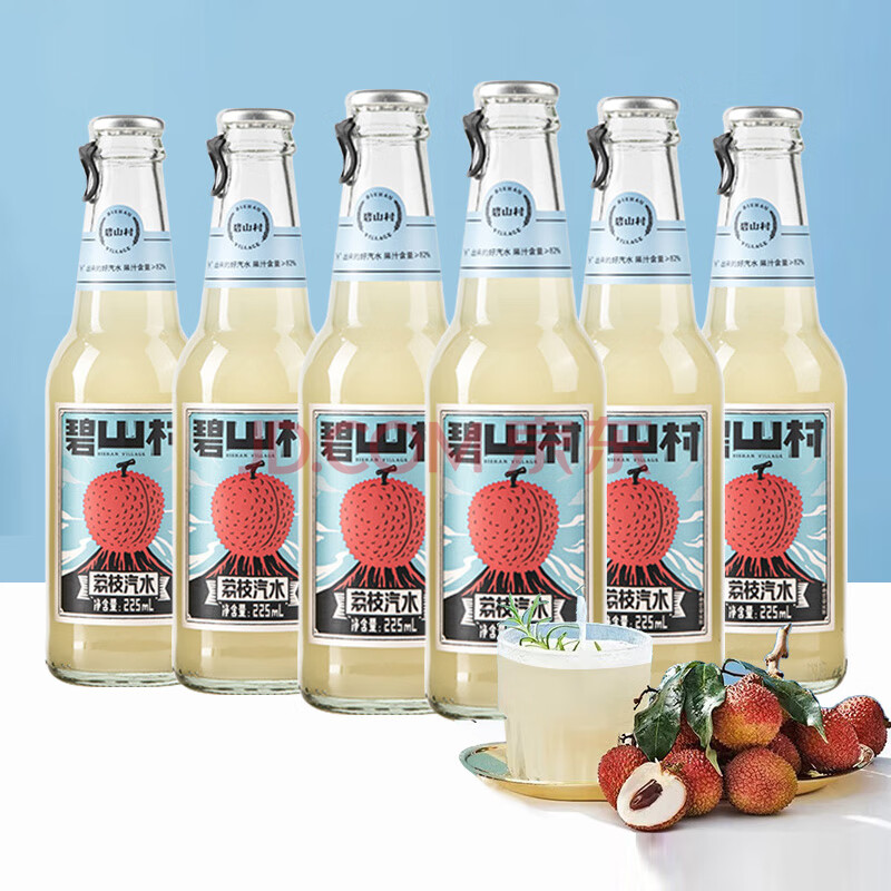 商品名称:碧山村荔枝味果汁汽水225ml*6瓶 0脂肪玻璃瓶气泡水网红碳酸饮料