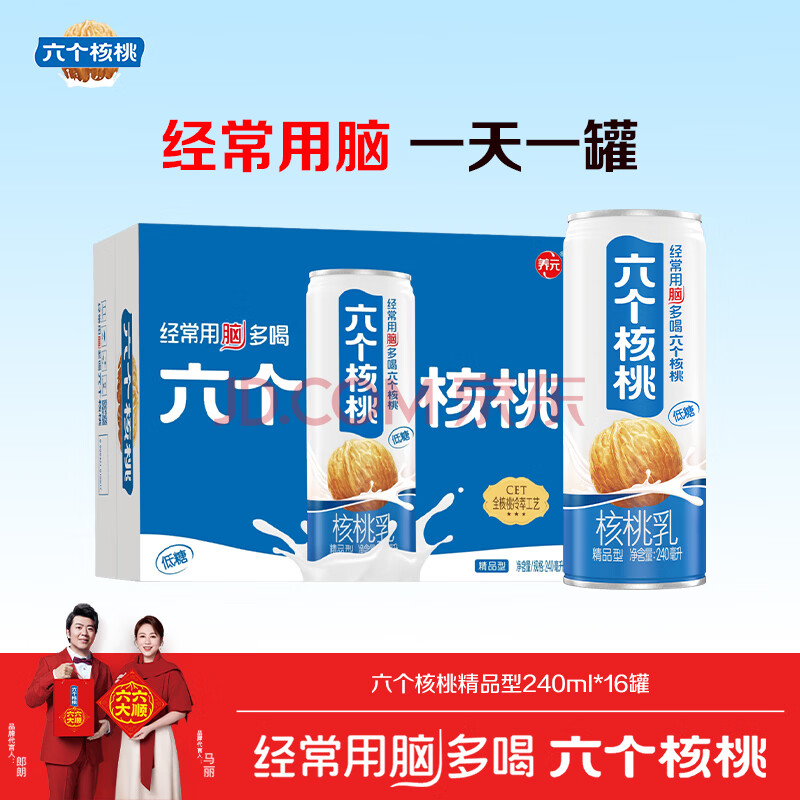 商品名称:养元六个核桃 精品型核桃乳植物蛋白饮料 240ml*16罐 整箱装