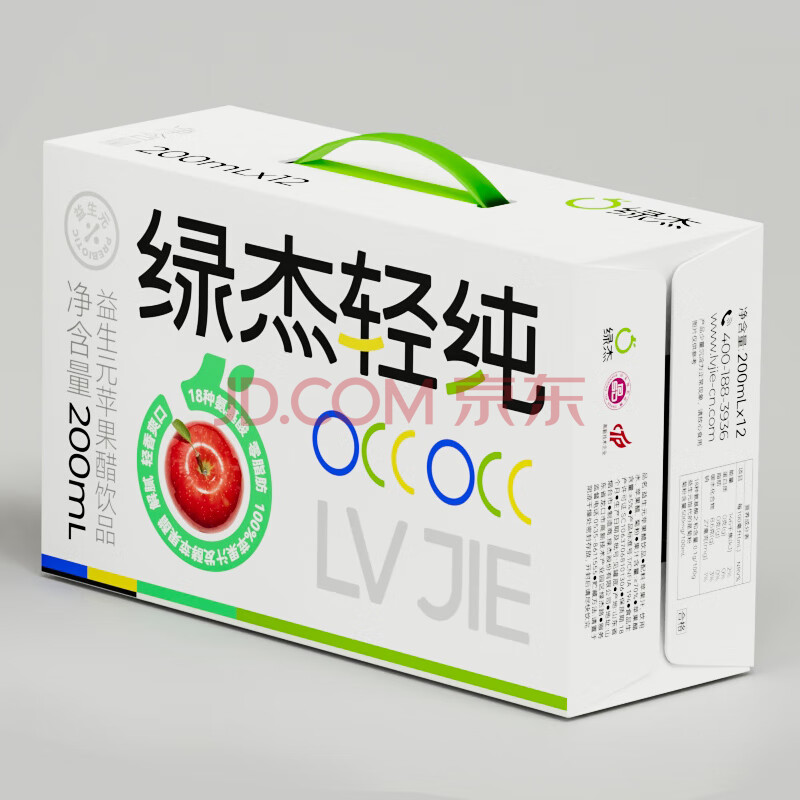 商品名称:绿杰轻纯益生元苹果醋饮料200ml*12瓶装0蔗糖0代糖酸甜爽口不含汽
