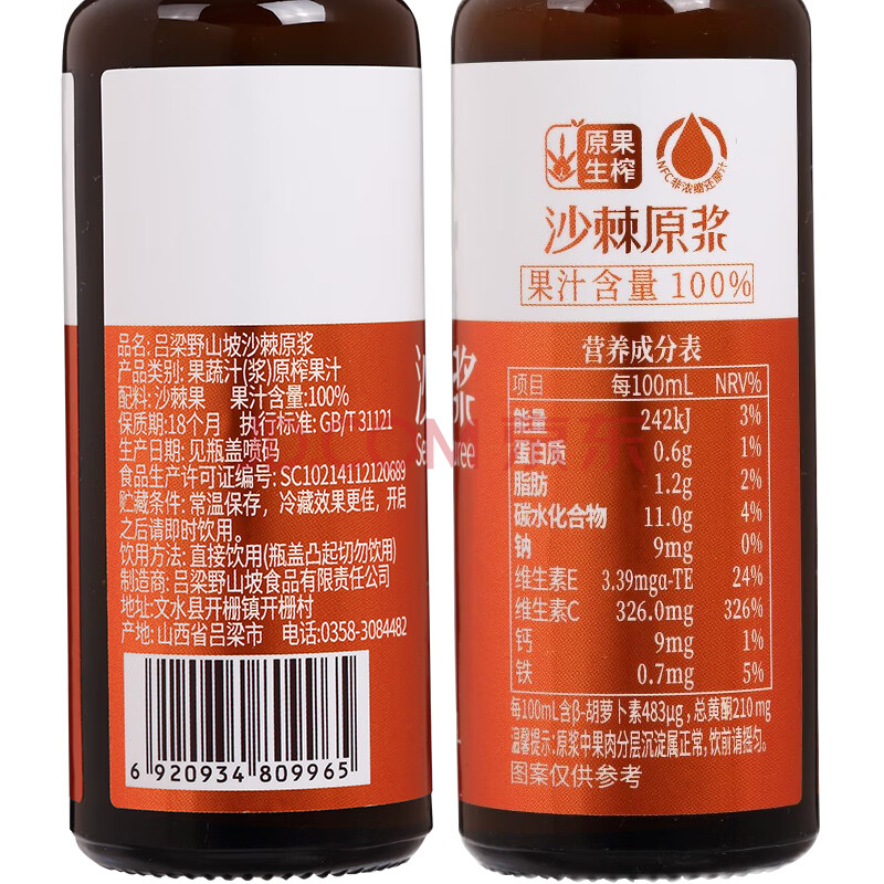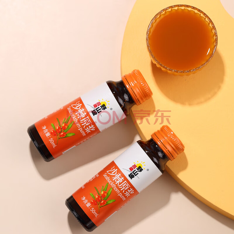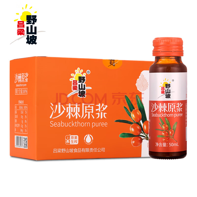 商品名称:吕梁野山坡沙棘原浆原液 100%沙棘汁 果汁饮料50ml*10瓶 (包装随机)
