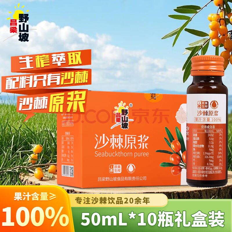> 吕梁野山坡沙棘原浆原液 100%沙棘汁 果汁饮料50ml*10瓶 (包装随机)