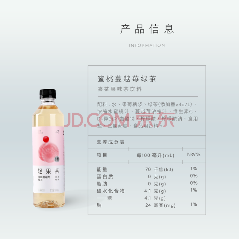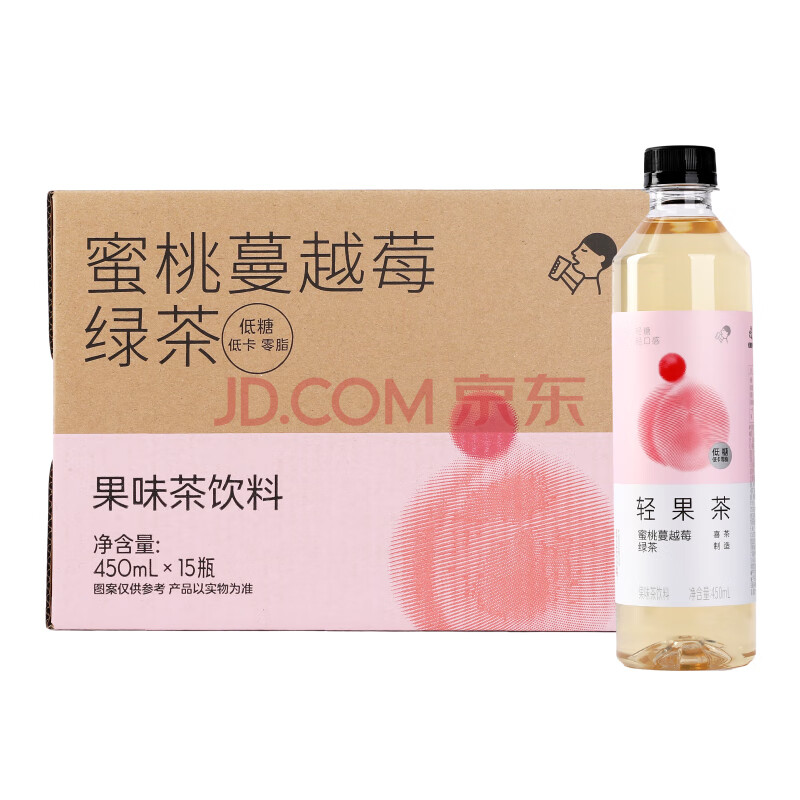 商品名称:喜茶轻果茶蜜桃蔓越莓450ml*15瓶 低糖低卡0脂 果味茶饮料整箱