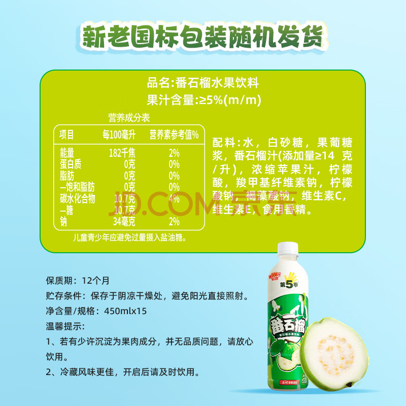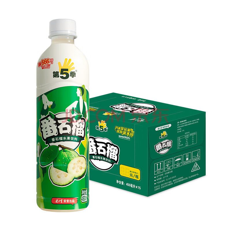 商品名称:健力宝第5季番石榴芭乐味450ml*15瓶装整箱水果饮料含真果汁+维生素C