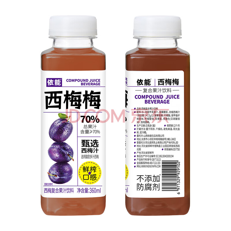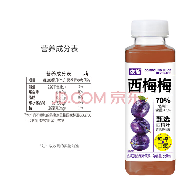 商品名称:依能 西梅果汁0脂0防腐剂 复合果汁饮料360ml*15瓶 家庭分享整箱装