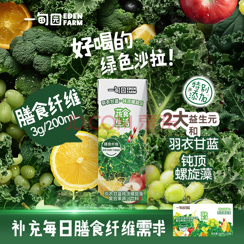 商品名称:一甸园羽衣甘蓝复合果蔬汁饮料200ml*10礼盒装蔬菜代餐果汁送礼液体沙拉